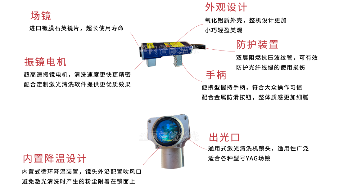 多學(xué)科融合的高學(xué)歷高素質(zhì)人才團(tuán)隊(duì),研發(fā)了激光清洗專用光源,并針對(duì)不同清洗對(duì)象進(jìn)行個(gè)性化設(shè)計(jì),且擁有多款完全自主知識(shí)產(chǎn)權(quán)的激光清洗裝備關(guān)鍵部件。 其中激光清洗槍頭自主研發(fā),重量不等,8種波形可選,在保障效率和清洗質(zhì)量的同時(shí),兼顧便攜性、靈活性、環(huán)保性,功能強(qiáng)大。